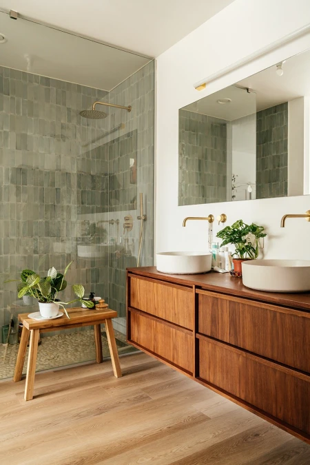 Straight vinyl planks, vinyl tiles, or herringbone vinyl planks—the choice is yours. Let yourself be guided entirely by your favorite interior style, because all three of our vinyl flooring options are perfectly suited for the bathroom.