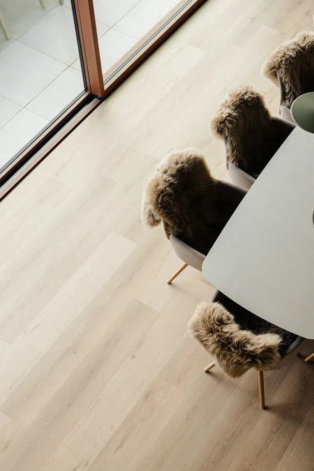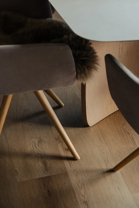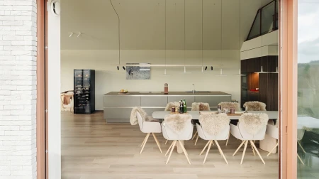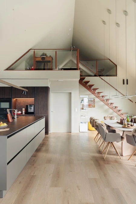Parquetvinyl was chosen for the floor finish. A decision that fits in perfectly with the concept of the home, both aesthetically and practically. The natural wood look brings warmth to the modern spaces, while the easy-care properties are ideal for a holiday home that is used intensively. The result? A floor that not only looks beautiful, but can also withstand everyday life.